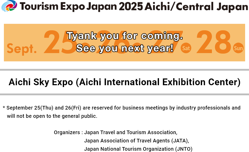 For Trade & Press2025.09.25“Tourism EXPO Japan 2025 Aichi/Central Japan” Opens Today!