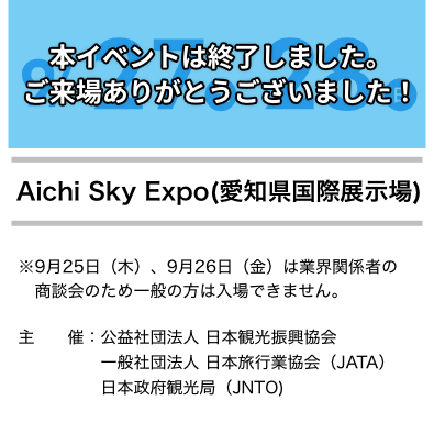 すべての方2025.10.06ツーリズムEXPOジャパン2025 愛知・中部北陸 来場者数発表(確定数値)